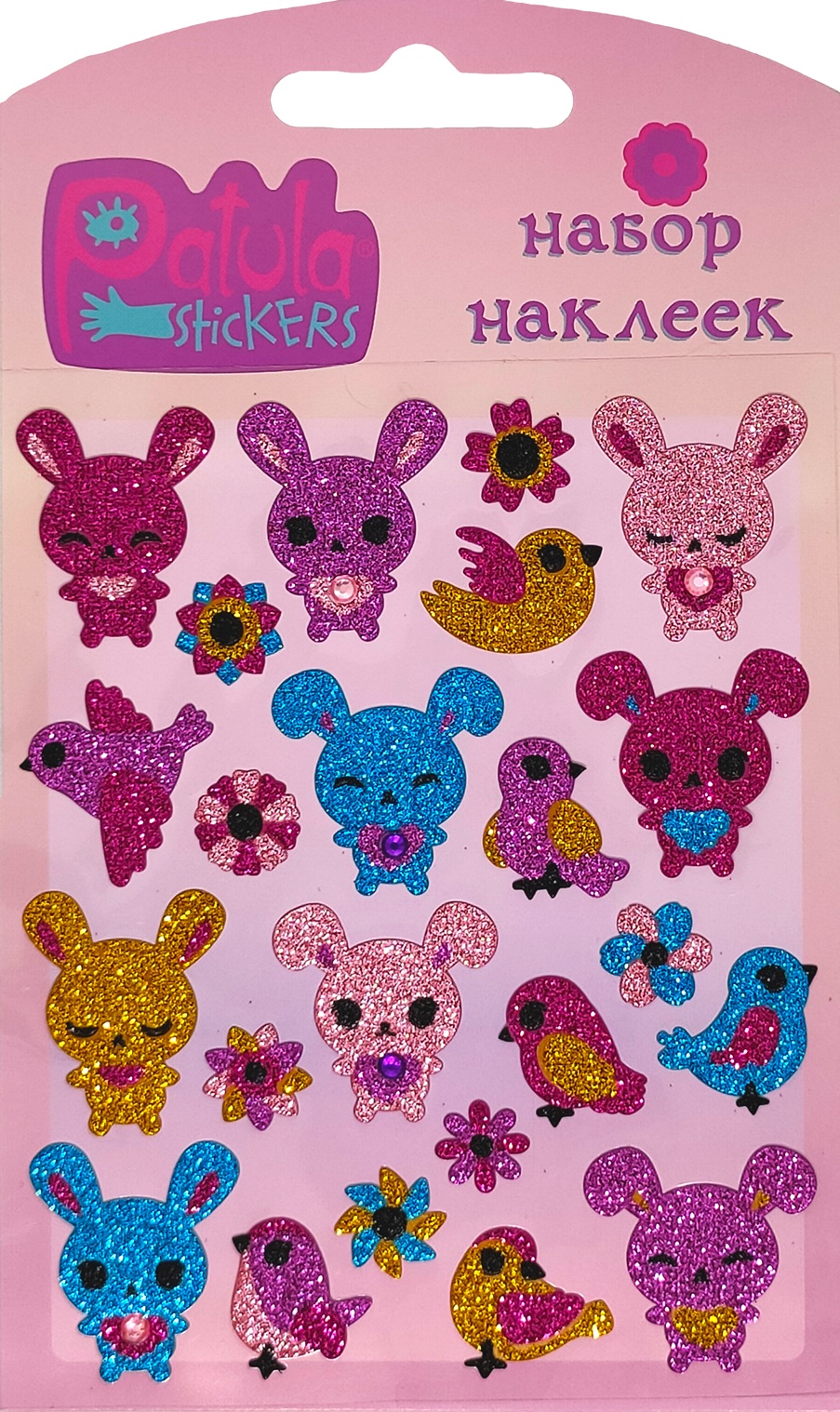 GP18 Блестящие наклейки Животные Кр2 (Зайчики, животные, цветы)